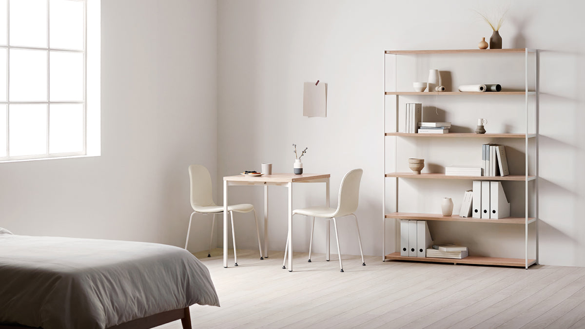 藉由書架、書櫃和桌子相同高度設計,您可以將這兩款產品搭配使用,
