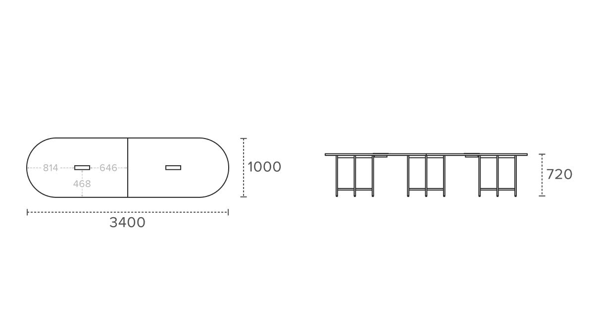 在擺放大尺寸的會議桌款時,空間至少需達 3400mm。