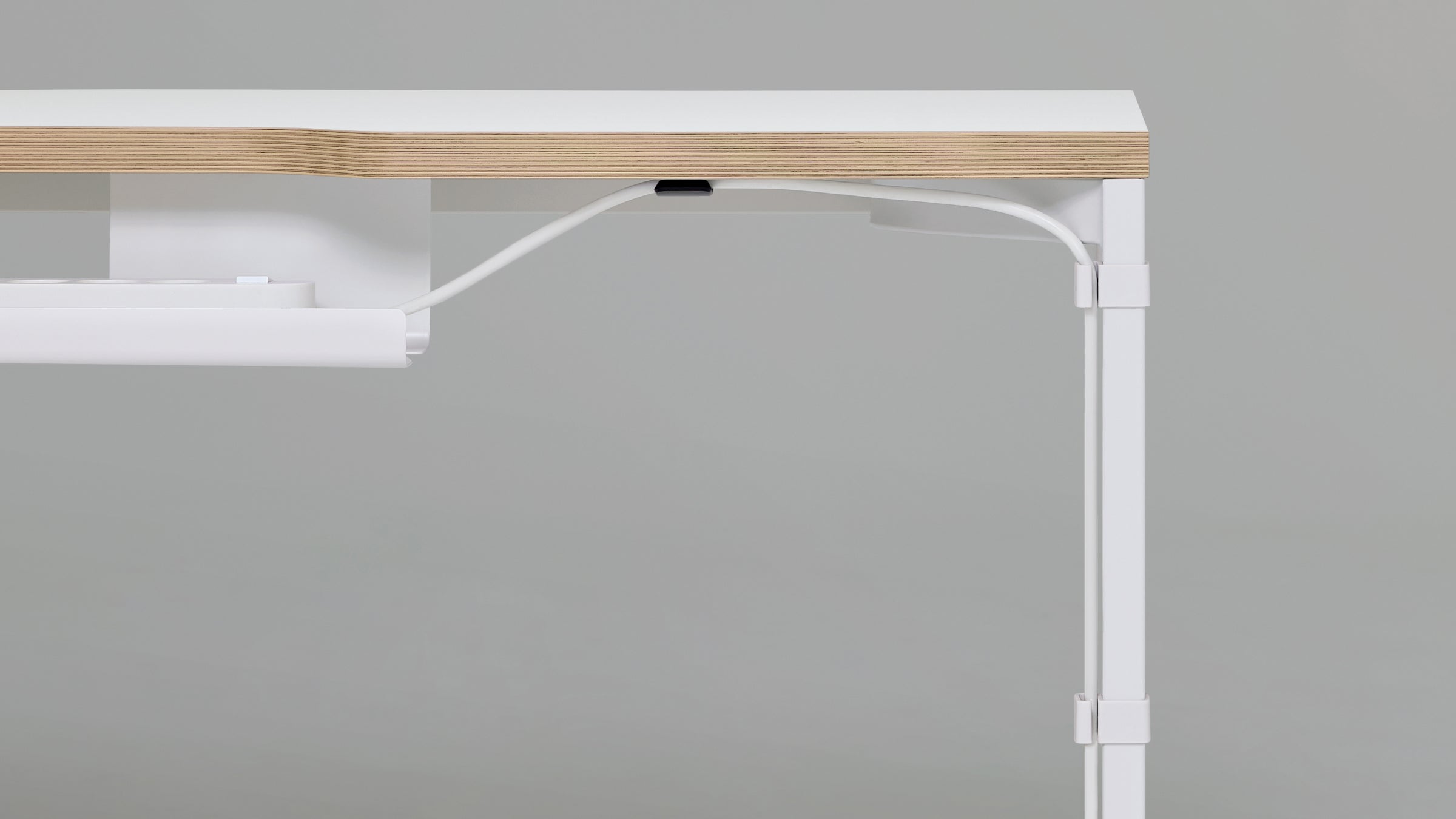 這是一款可輕鬆卡在桌腳上的配件,讓任何人都能輕鬆整理電線。