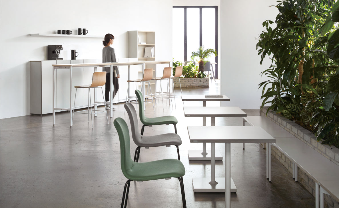 輕巧俐落的外型設計,可適用於咖啡館、開放用餐區、休憩空間與會談場域,滿足多元使用情境。