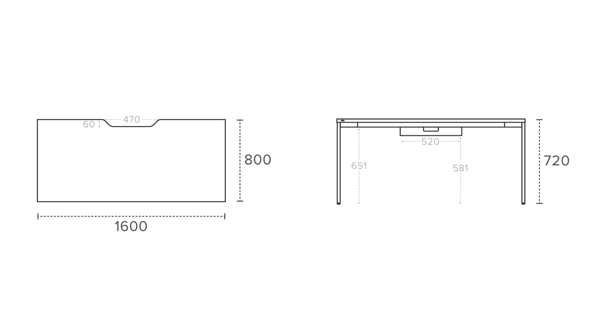 深度達 800mm 的桌面提供了寬裕的空間,讓使用者可以自由運用各種工作工具。