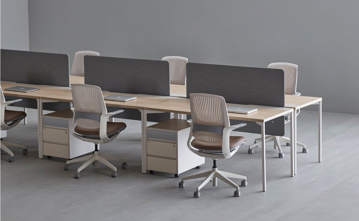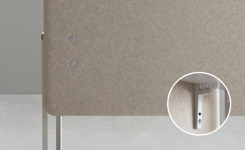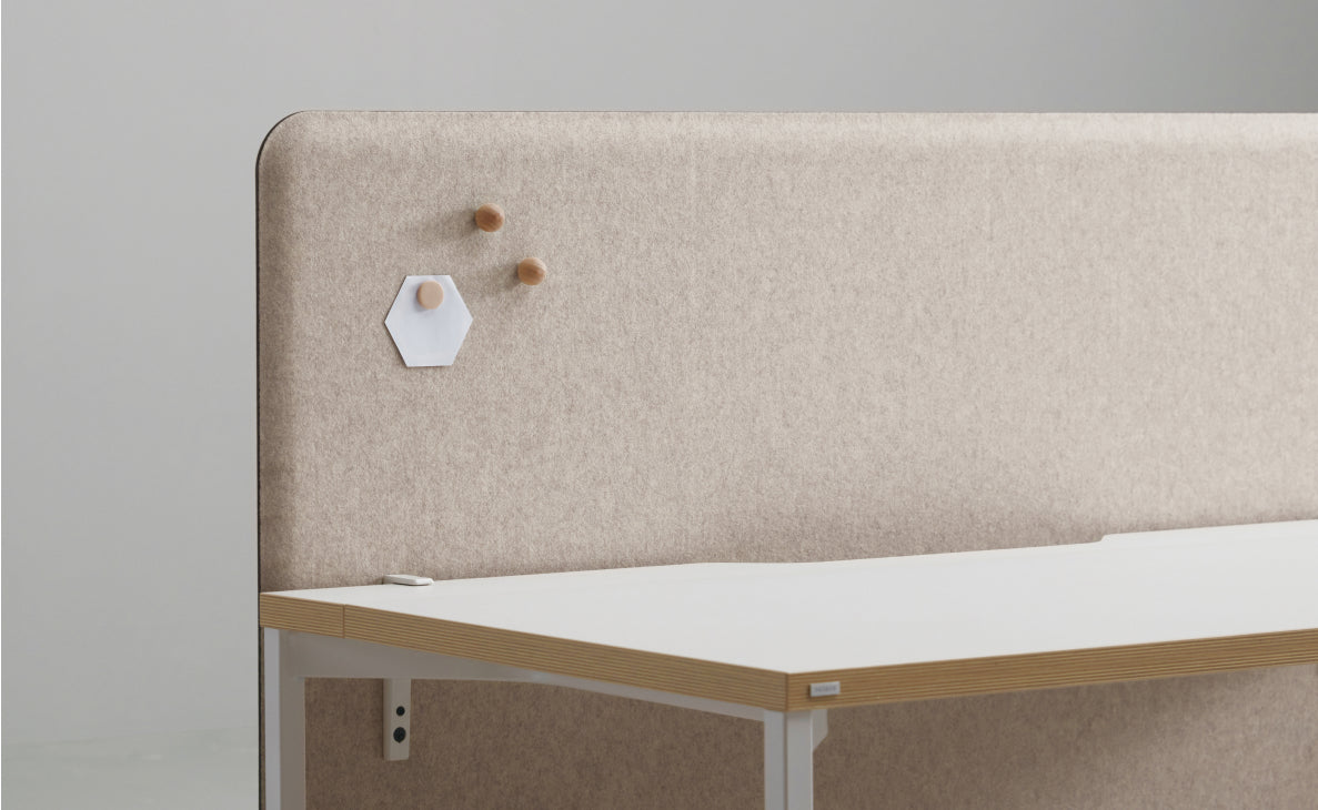 隔板自桌面向上延伸約 40cm,遮擋視線同時保留溝通空間;