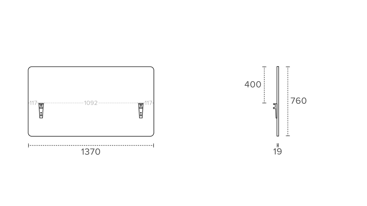 ※ 安裝固定支架需約 70mm 平整面積,請確認桌板下方無補強框架等干擾物。