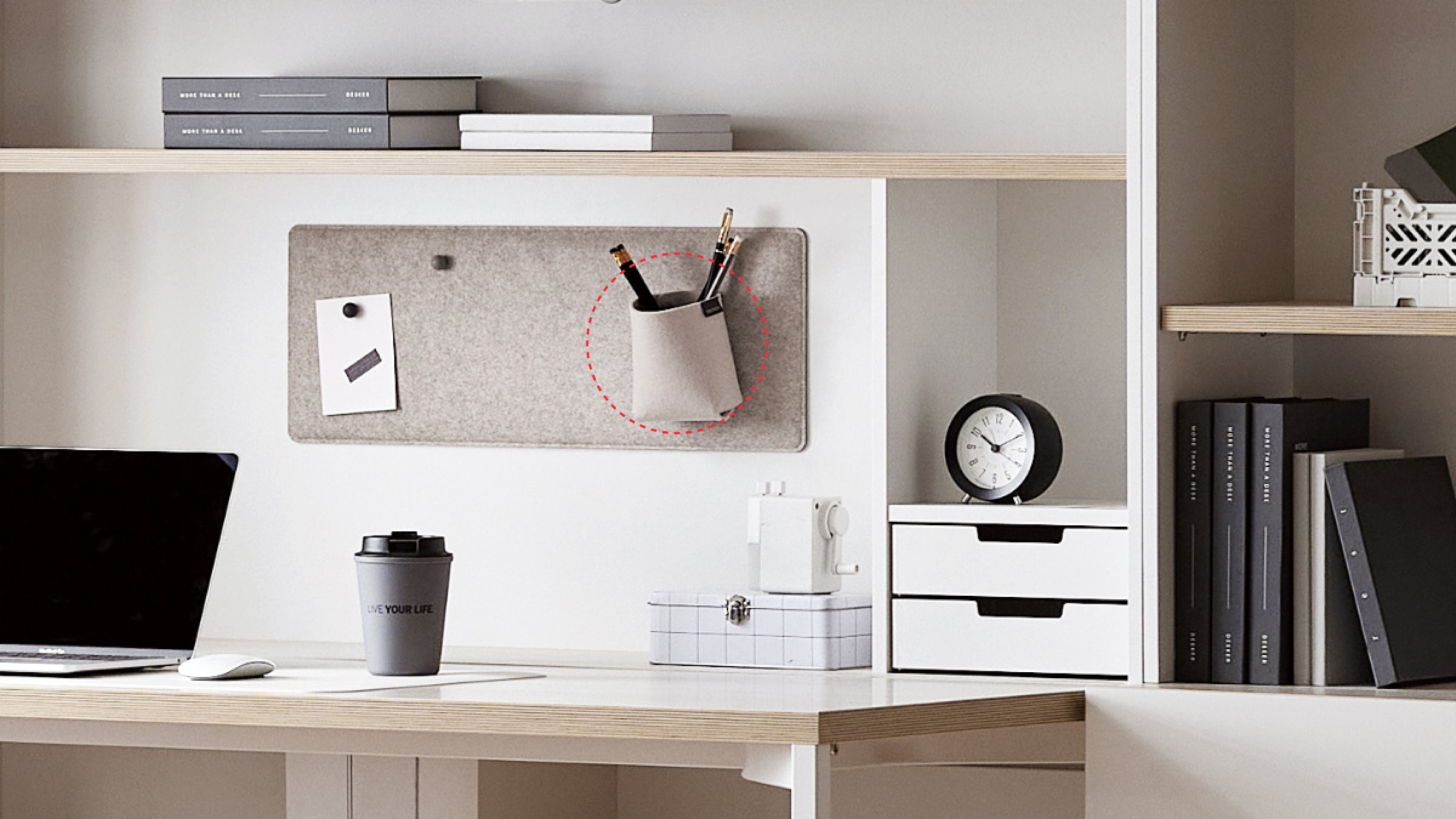 可貼附於毛氈隔板、書桌套組的磁性板等任何可吸附磁鐵的表面。 非常適合收納日常小物,方便實用。