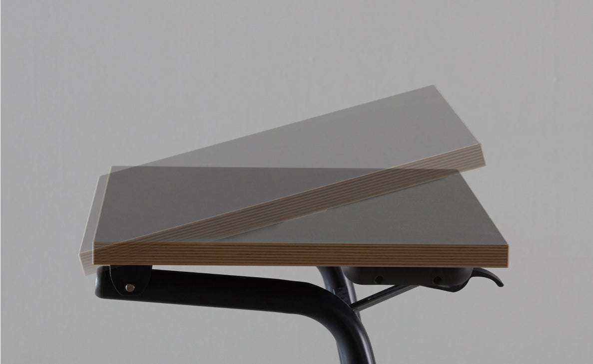 可透過位於桌板後方的角度調整桿,輕鬆調整桌板角度。
