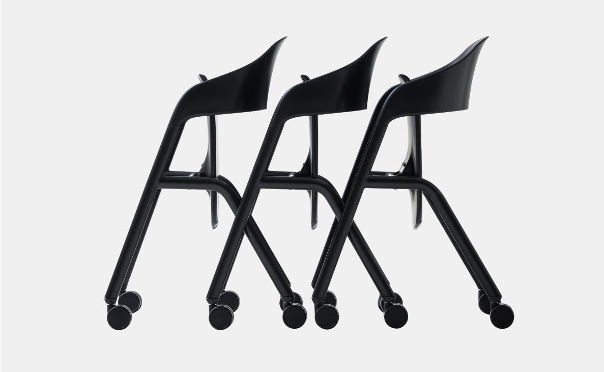 椅面可摺疊,椅子之間可堆疊收納,