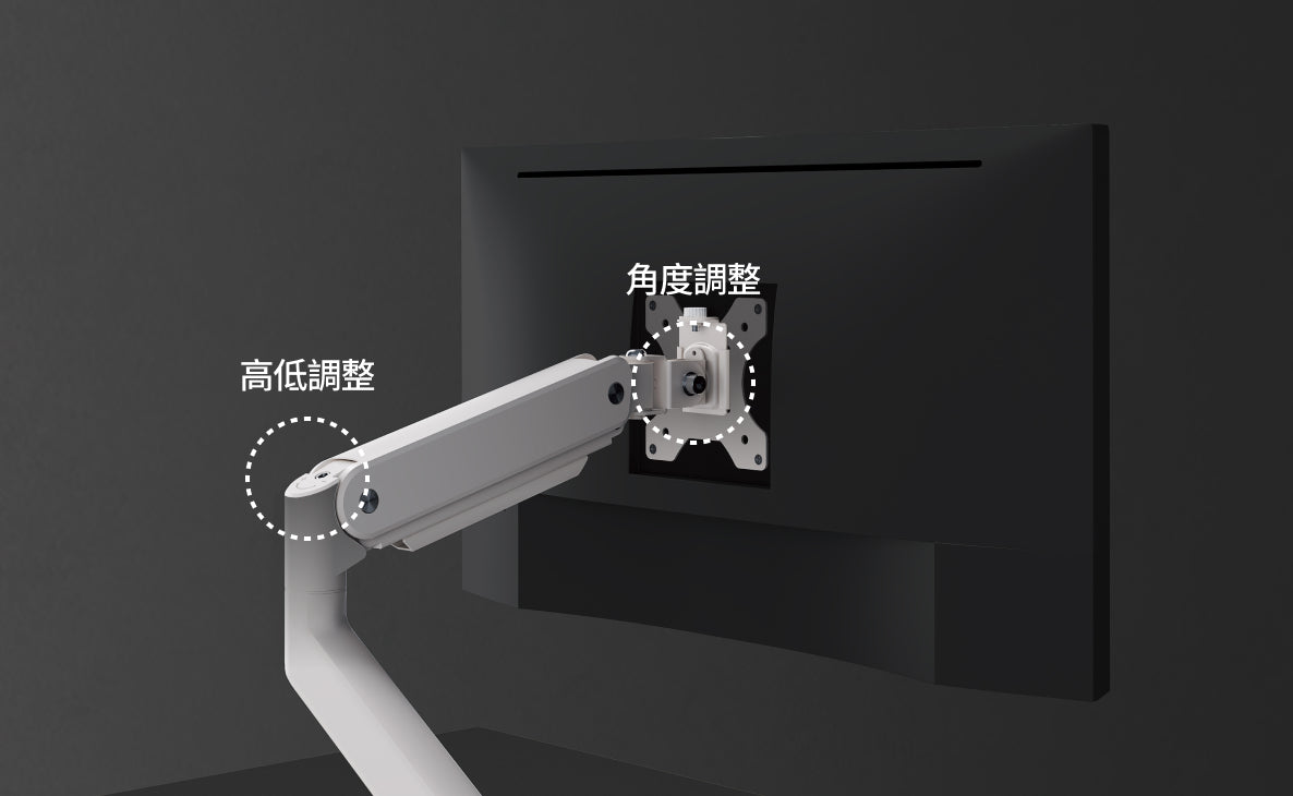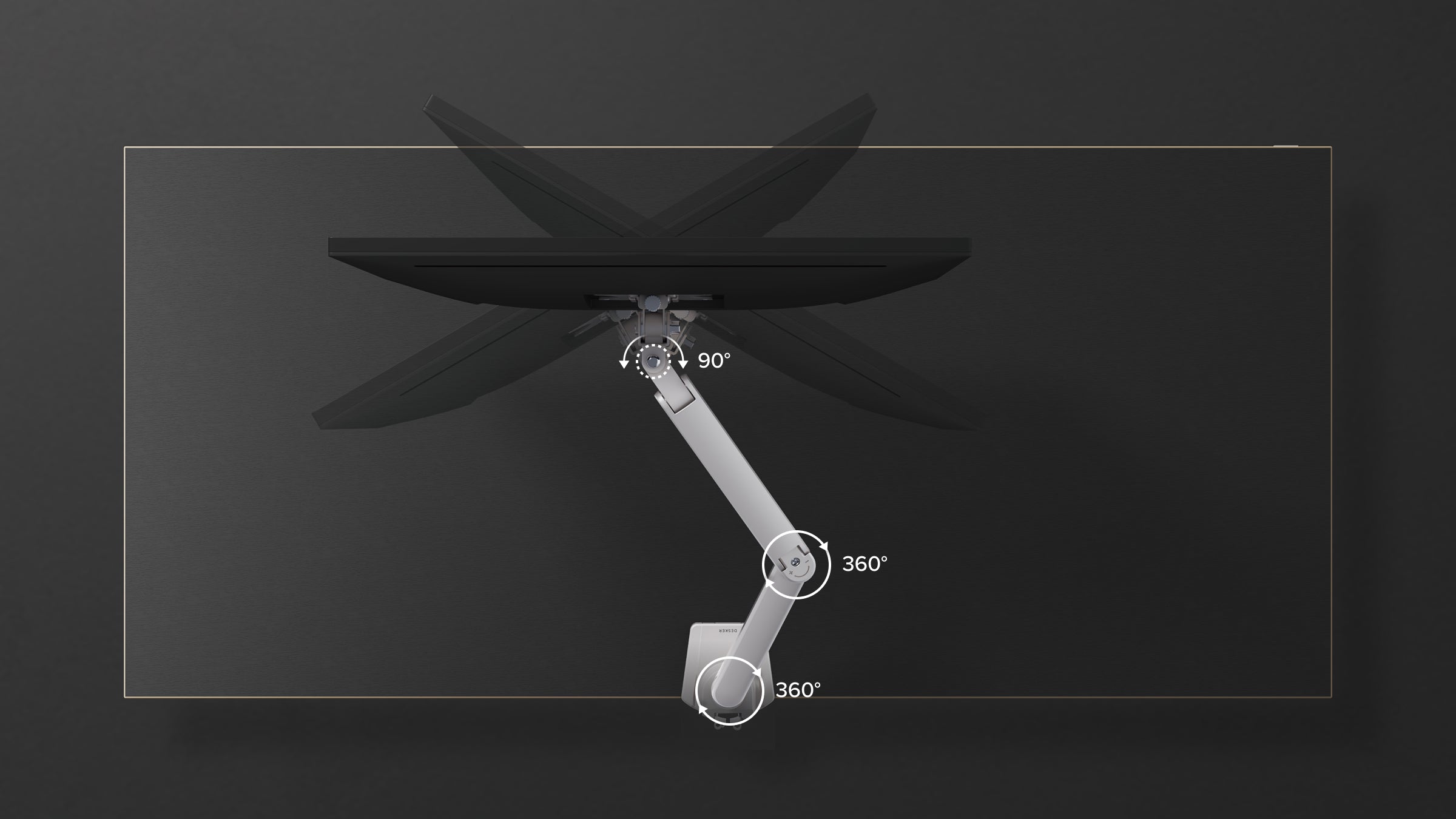 透過主要的三個旋轉點,您可以平衡調整顯示器設置,並實現流暢的移動。