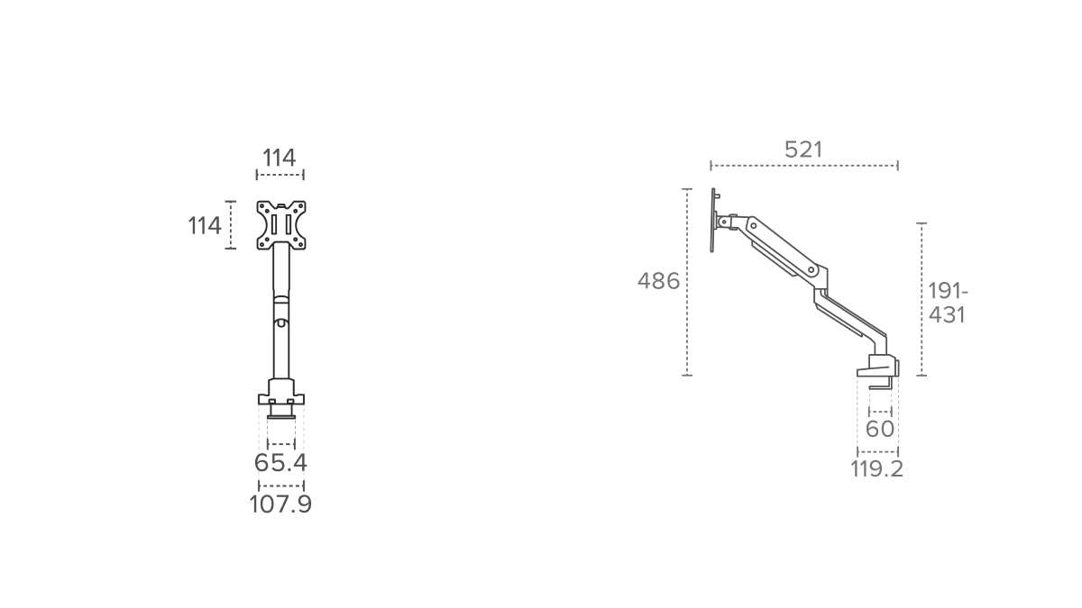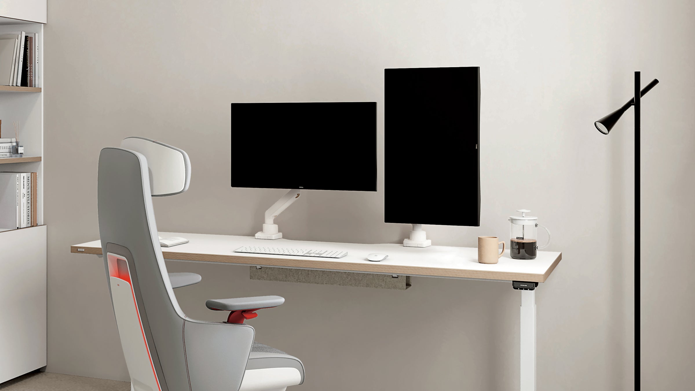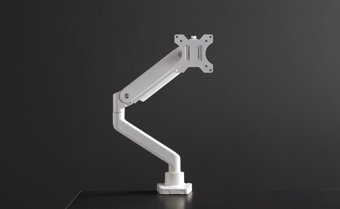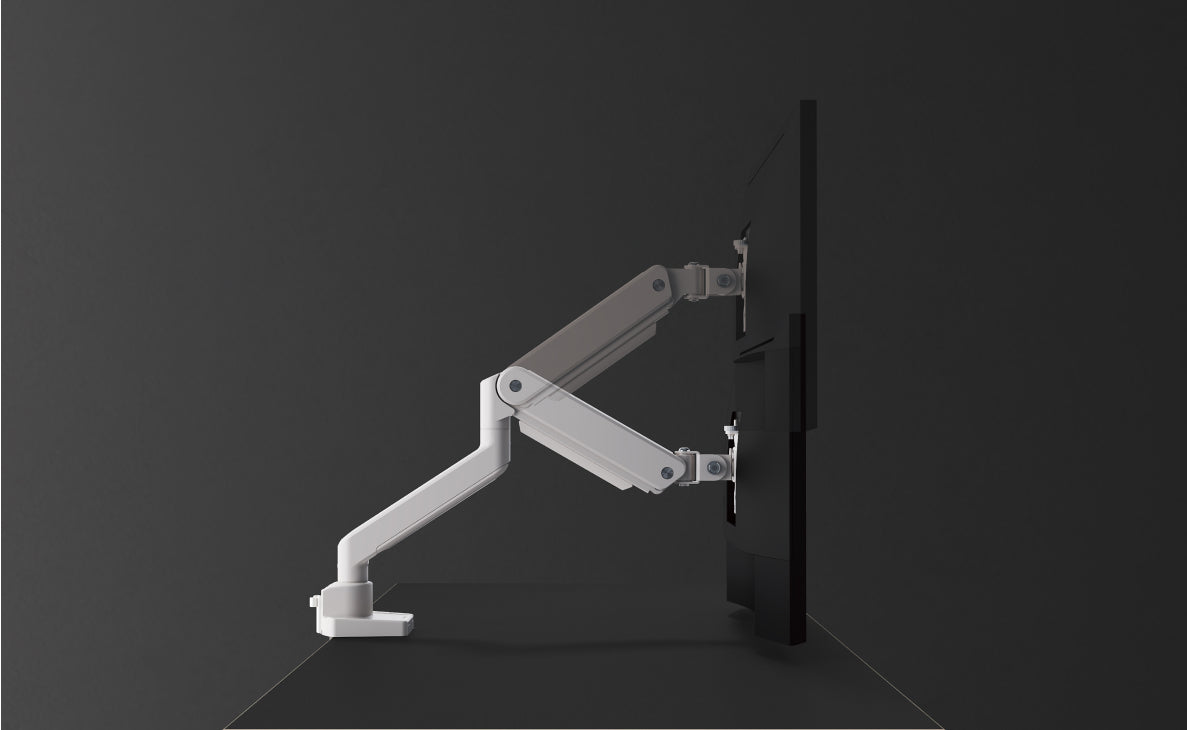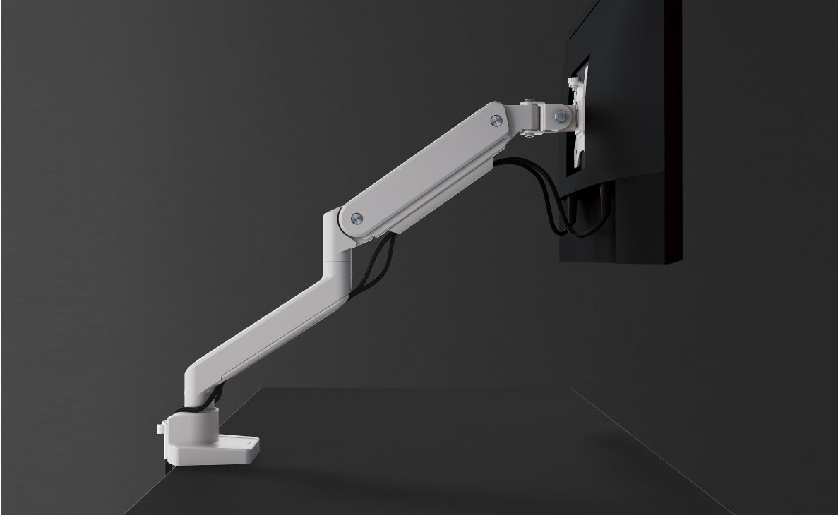DESKER 螢幕支架採用上方夾具式結構,使用者可以輕鬆安裝與設定。詳細安裝方法請參考螢幕支架組裝教學影片。