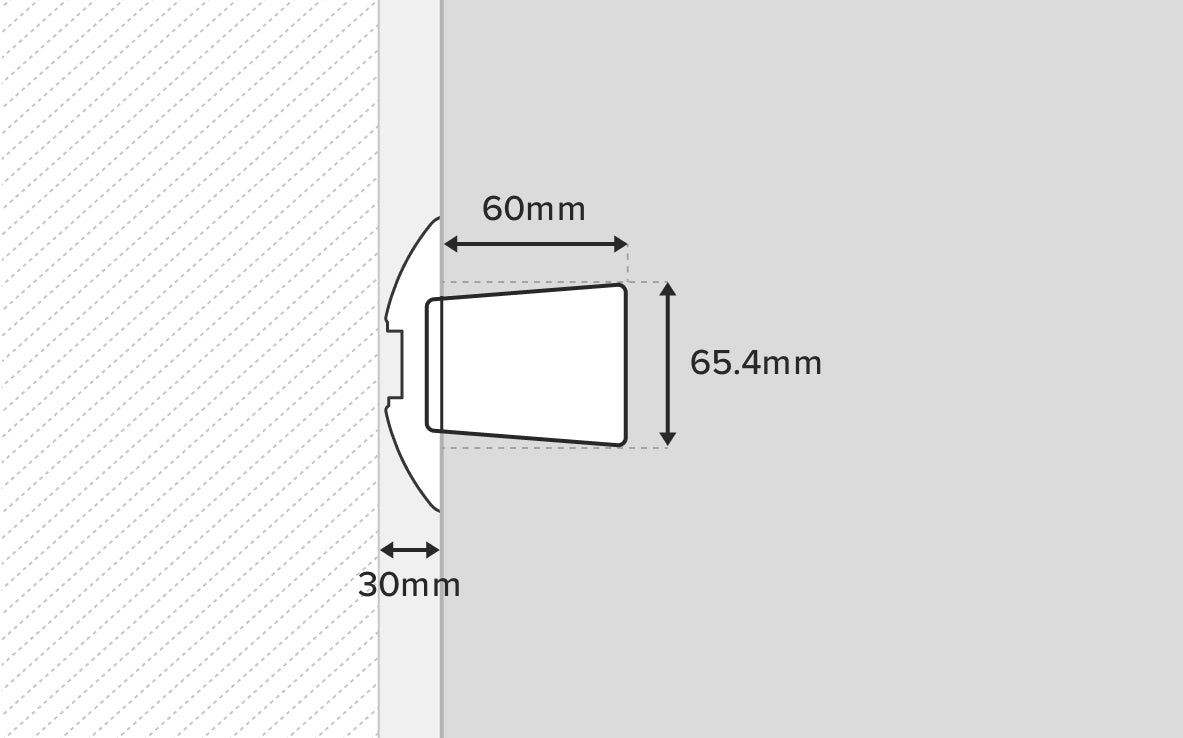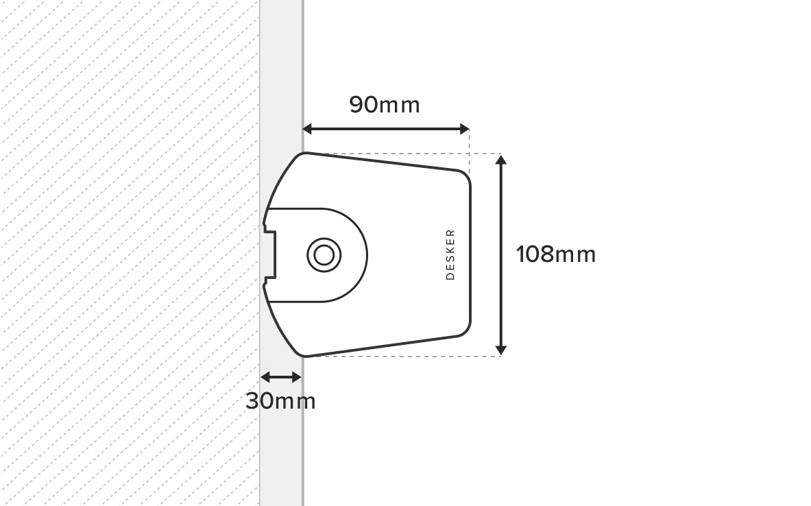 此外,桌面後方與牆壁之間須留有至少30毫米的空間,