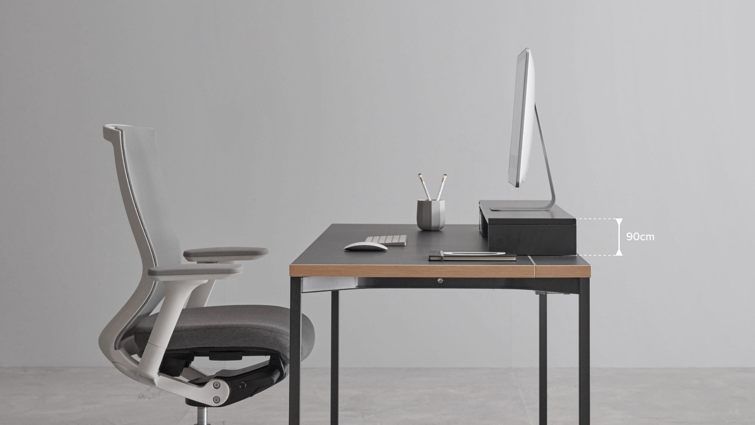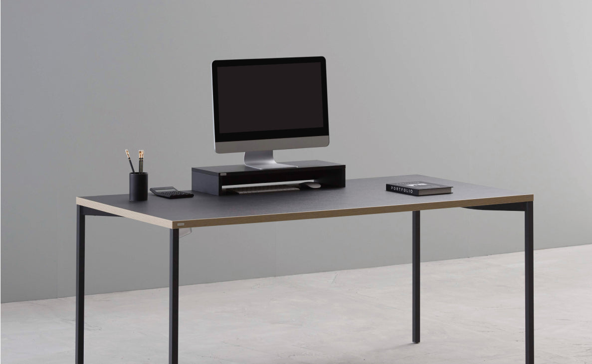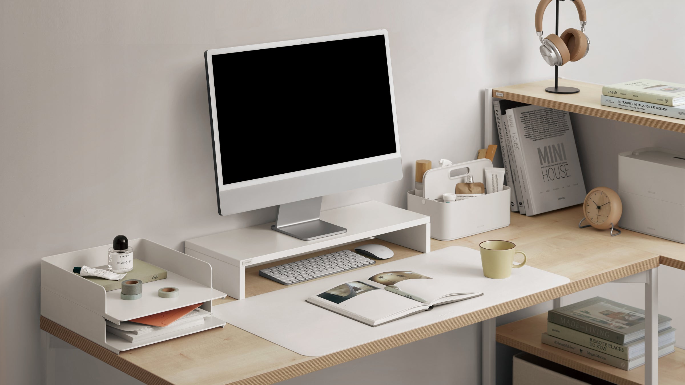 利用螢幕支架下方的空間,將桌面整理得乾淨整潔。