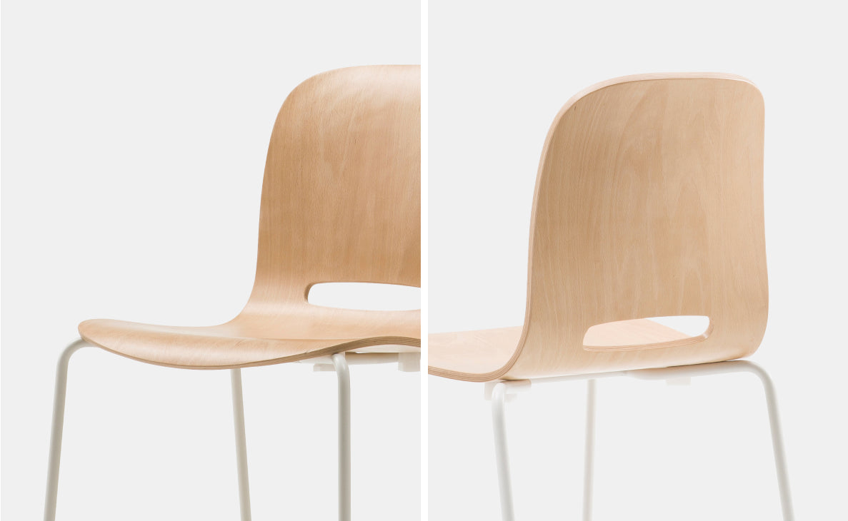 SPOON 的椅背與座面採用山毛櫸實木製成,木質緊密且具彈性,