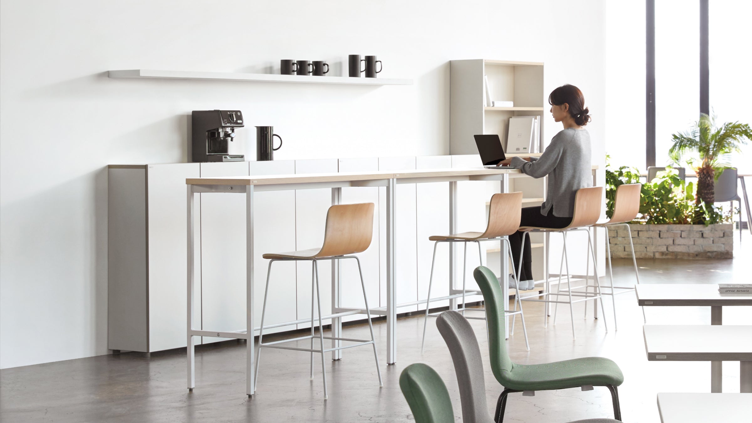 桌面高度設計與同系列高腳椅完美搭配,打造自然流動的交流氛圍。