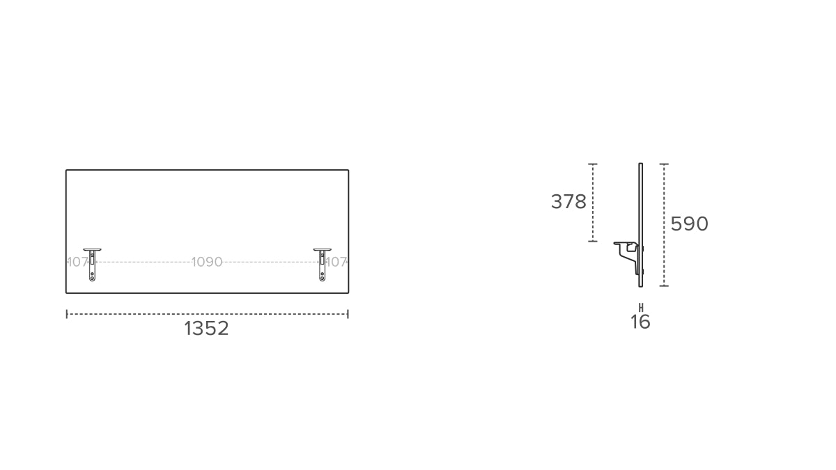 即使桌款標示相同尺寸(例如:W1600 電腦桌+W1600 木製前隔板),因設計差異,隔板寬度比桌面短約 24mm。